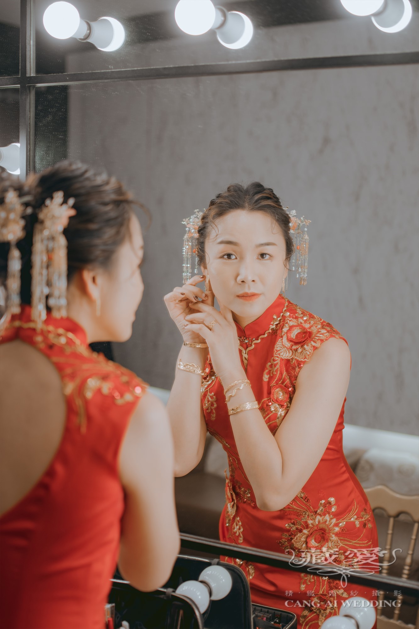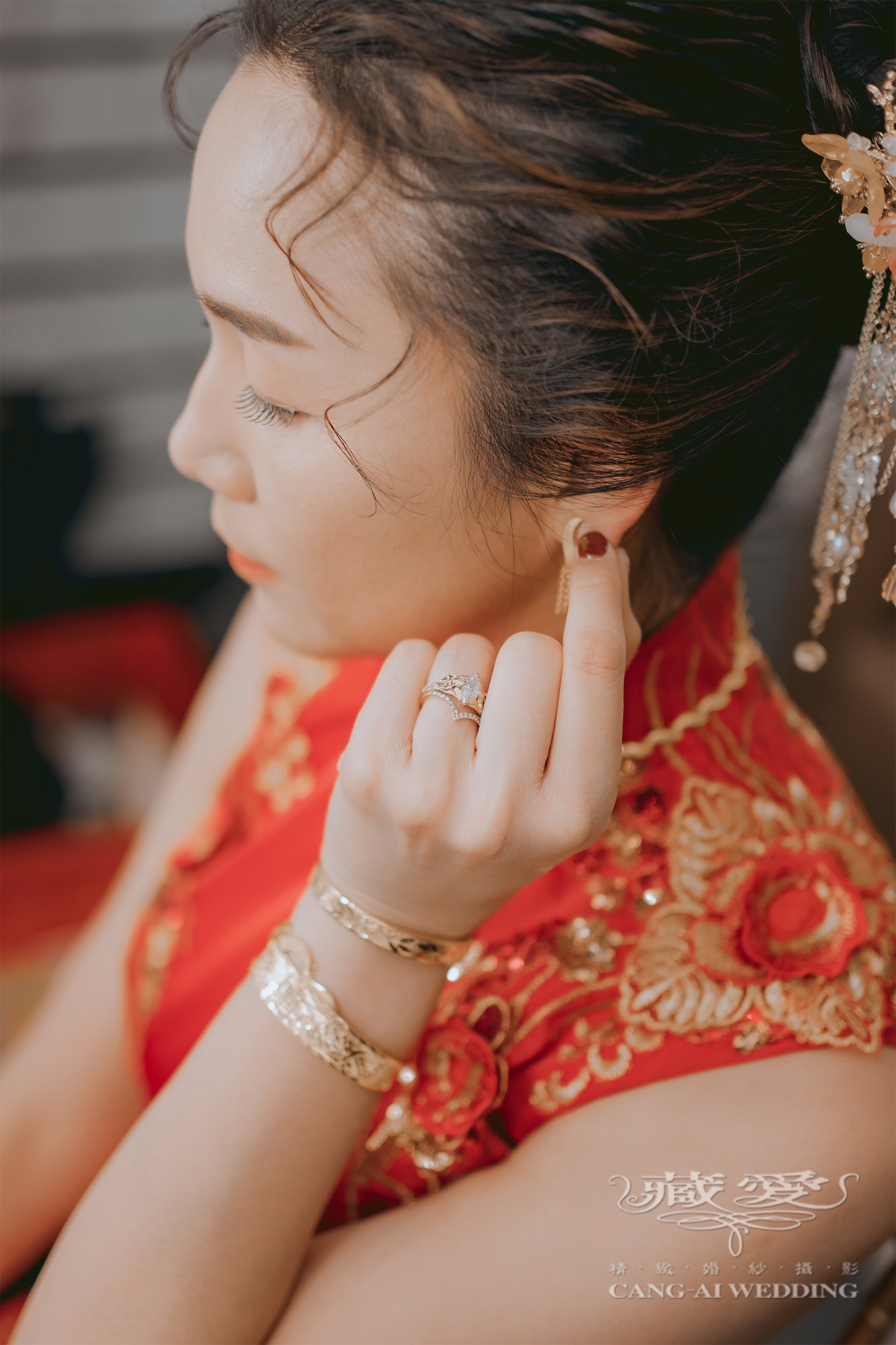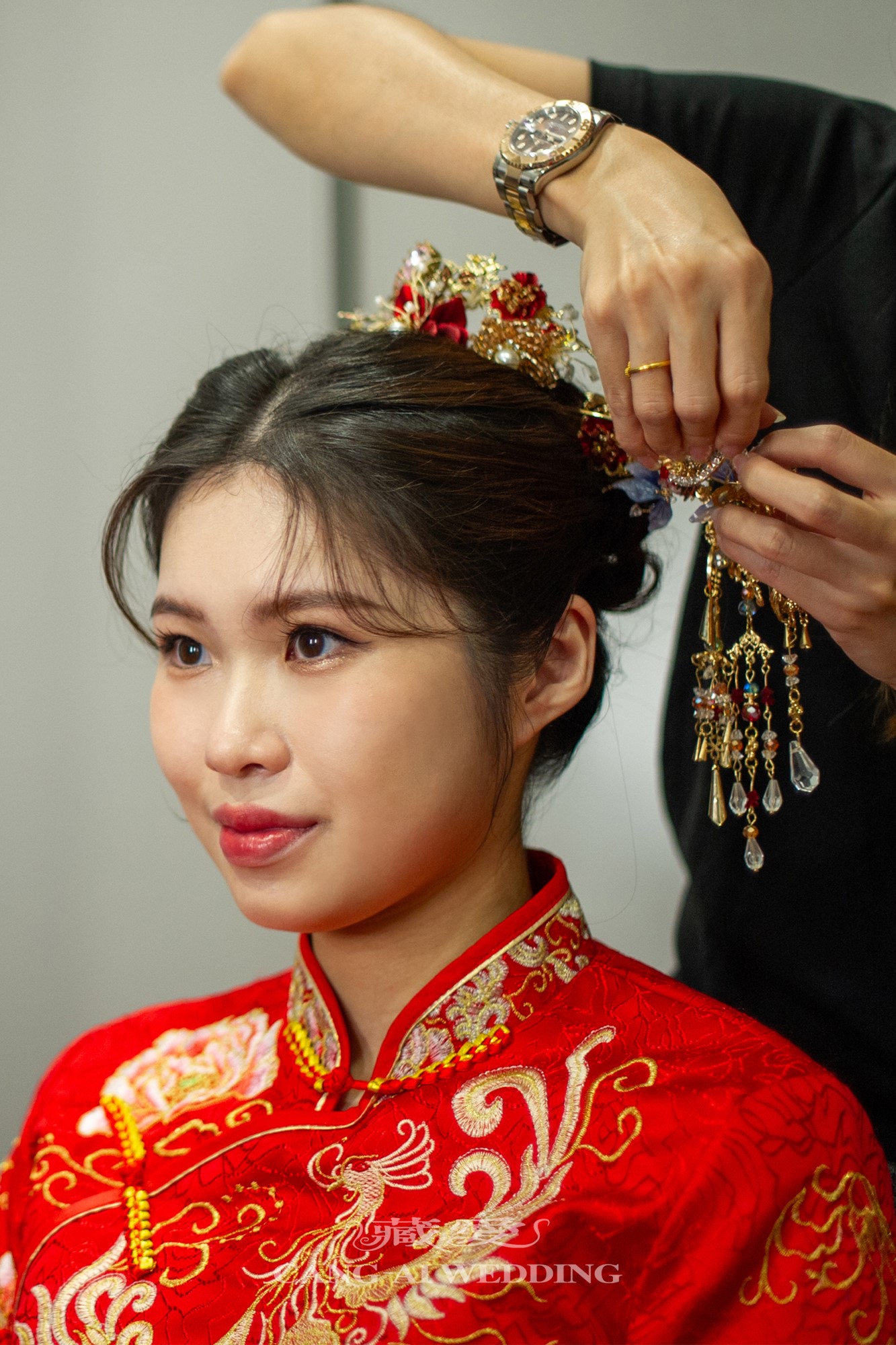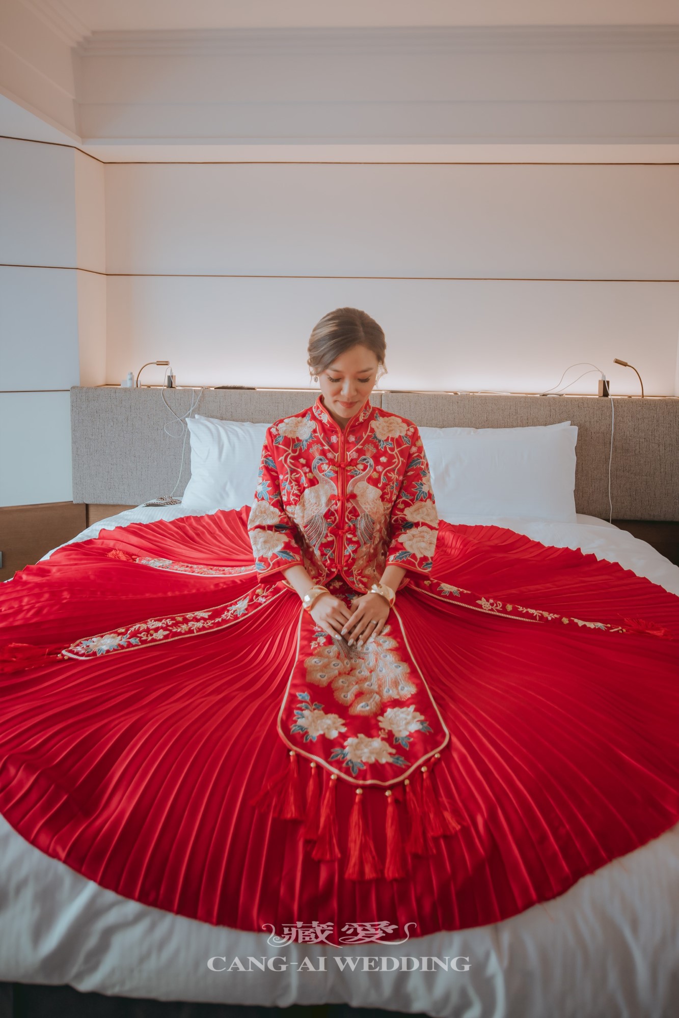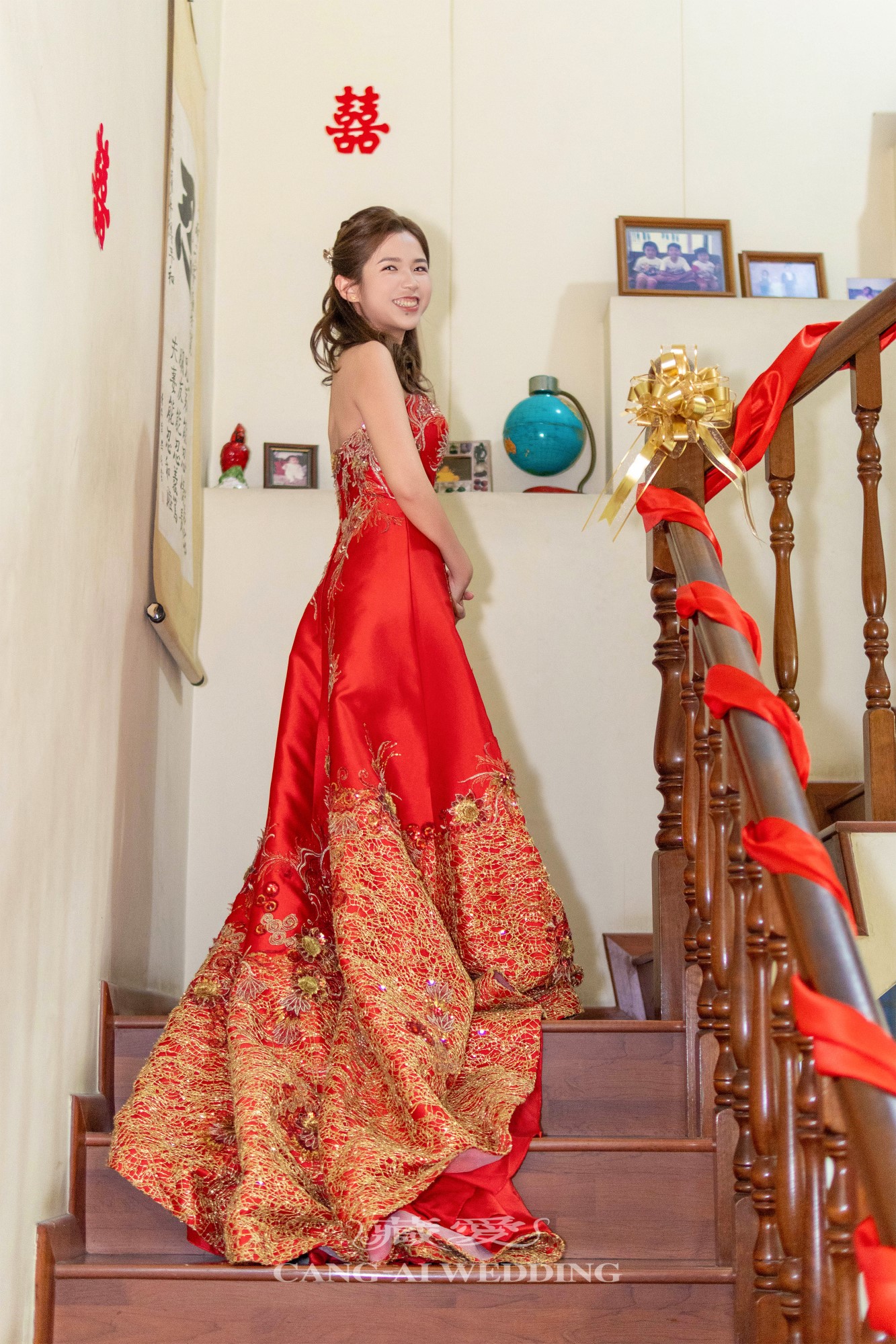 紅與金的交織,不僅映照出新娘的喜悅與幸福,更是對傳統文化的一種致敬。每一針刺繡、每一道紋飾,都蘊含著對愛情與家庭的美好寓意。穿上這份傳統,不只是換上禮服,而是披上千年來流轉的祝福。