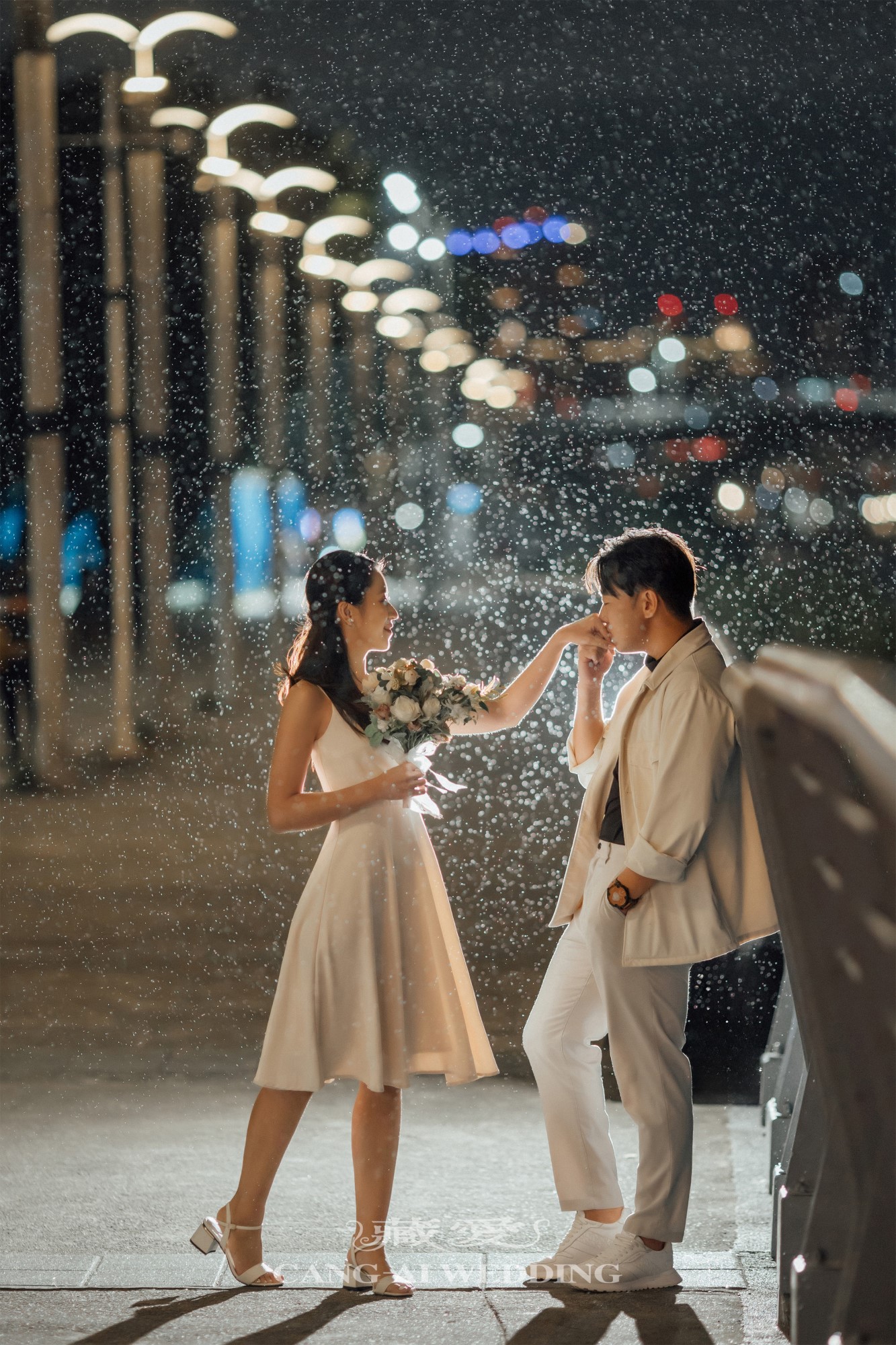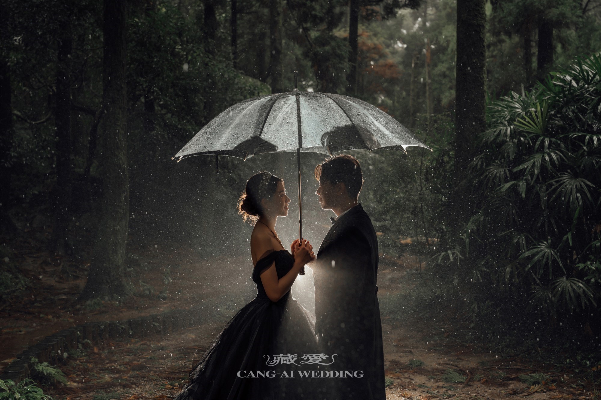 雨滴透過打光會讓背景變得更柔和,藍天白雲容易拍的美,陰雨天真的很靠攝影師的技術,也可以事前先溝通雨備的地點,拍照當天無須再緊張,交給專業攝影師即可👍