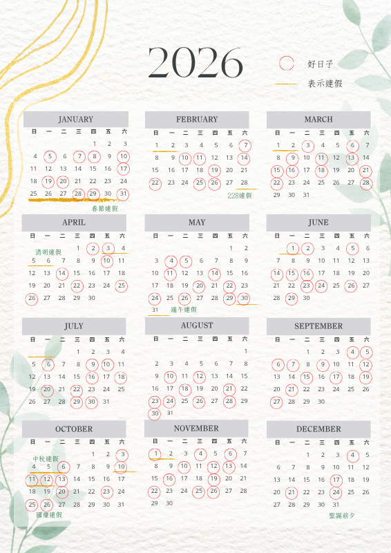 首先我們為您列出2025、2026年適合請假及假期辦婚禮的好日子: