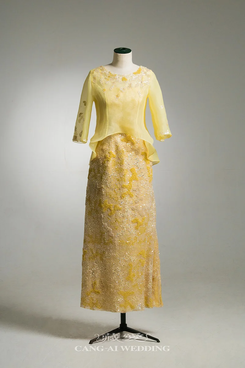適合較為正式的傳統婚宴,展現母親的端莊優雅氣質。
