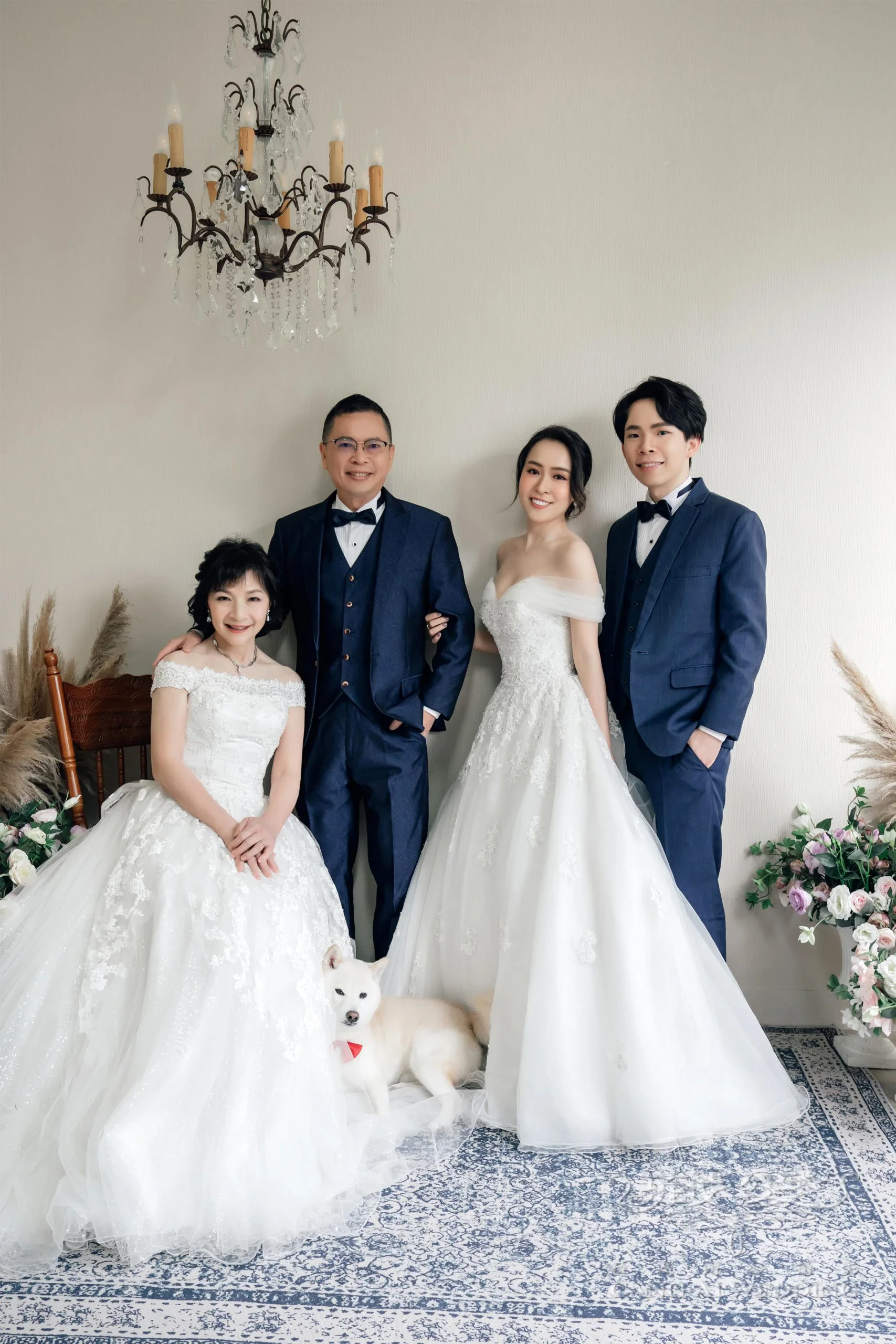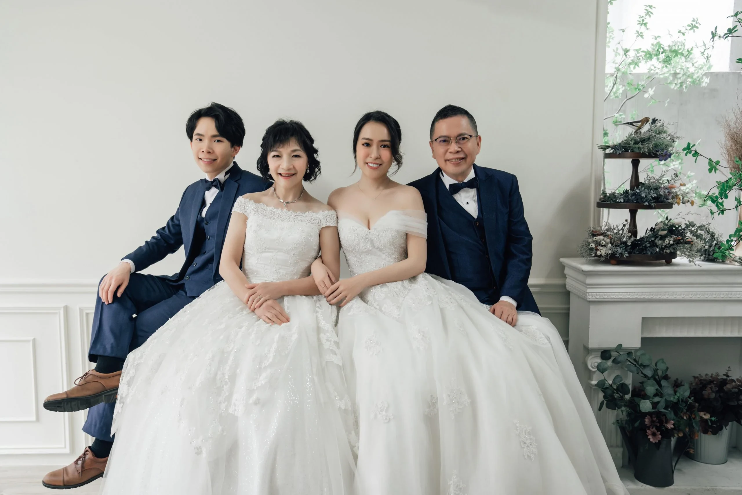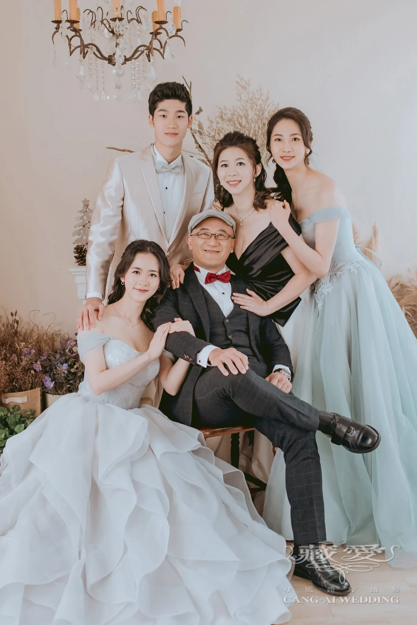 紀念一下難得的全家福🩵 - 媽媽結婚那天發高燒,所有拍出來的照片都病懨懨的,一直以來都很想好好的全家人拍一次全家福,終於在各方協調下完成此次任務。 從全家服的繪圖討論、衣物製作、禮服挑選、拍攝日排程和照片挑選,前前後後總共也花費了半年以上的時間,最終看到成品,終究是值得的ദ്ദി ˃ ᵕ ˂ ) 過程中謝謝門市欣岢,提供物超所值的優惠給我們,讓我們在有限的預算完成不可能的任務,也謝謝禮服秘書莉莉安,在挑選禮服的過程中給予建議,讓每個人都能在茫茫禮服海中挑選出自己最滿意的那套禮服。 拍攝當天很謝謝攝影師阿傑老師和他的助理,幫我們喬姿勢、喬位置、調整裙擺、控制寵物的鏡頭,那天拍攝完全0️⃣壓力且非常歡愉,連爸爸媽媽的鏡...