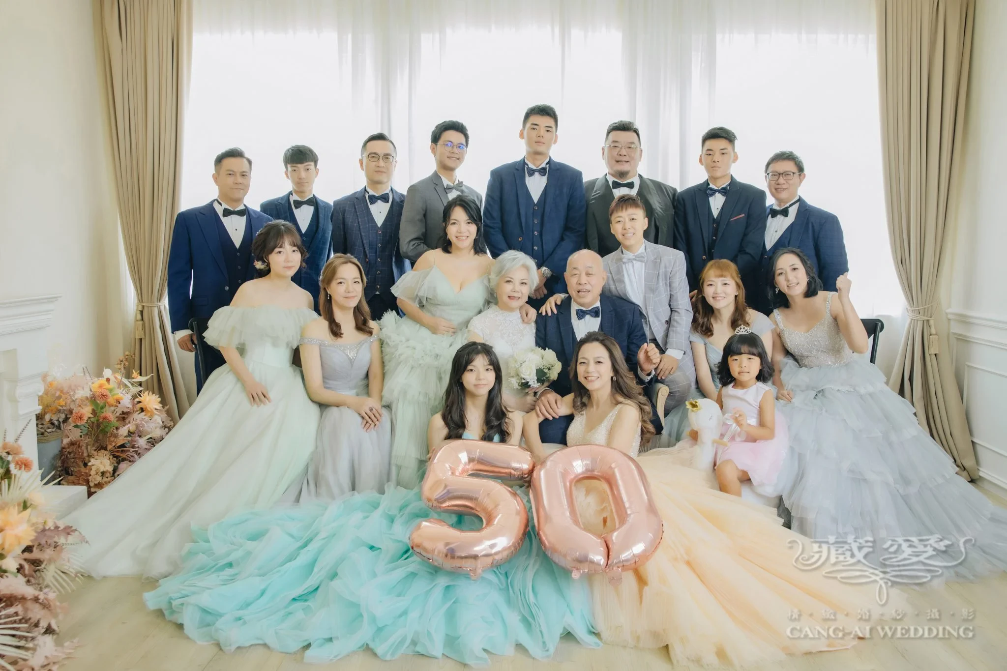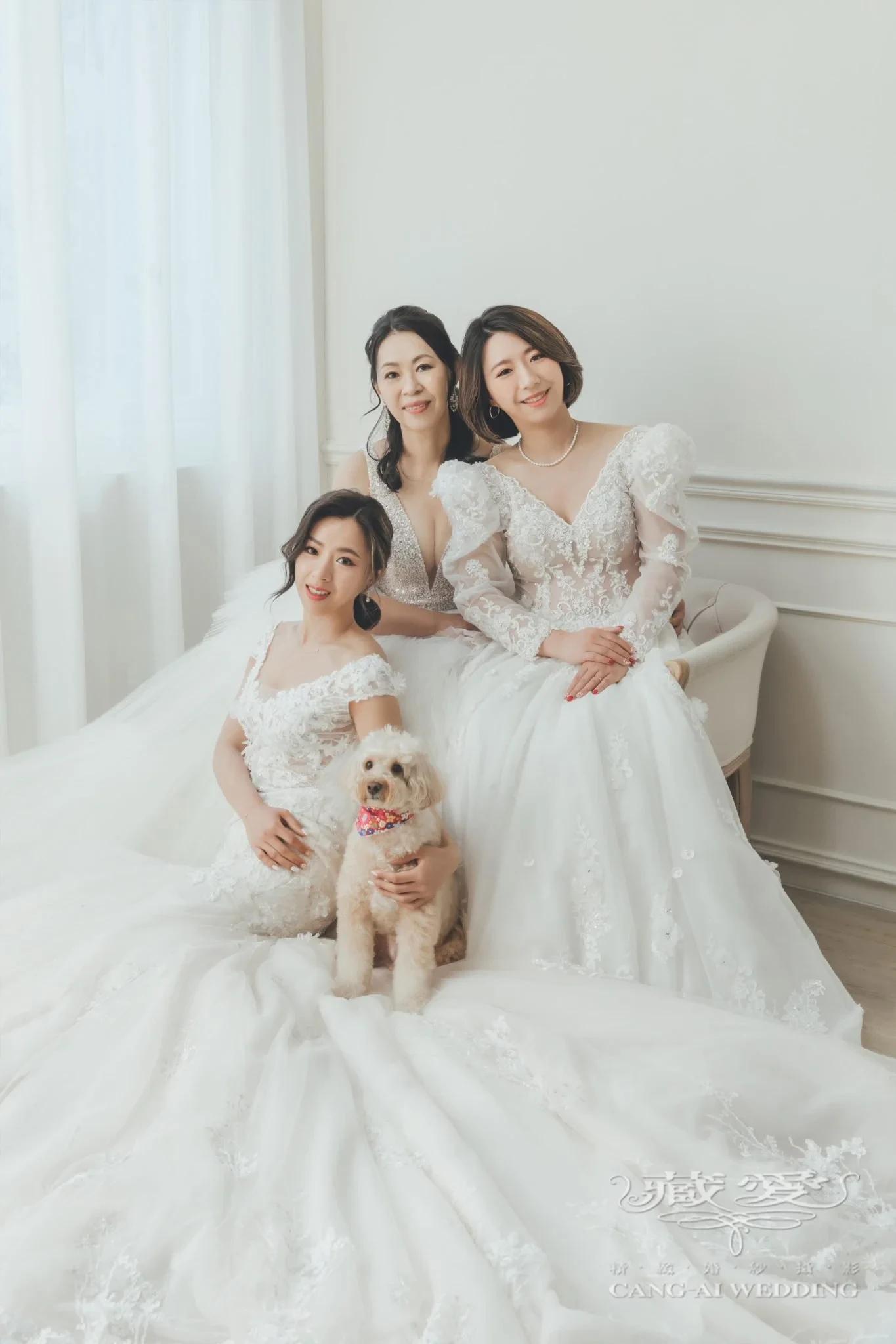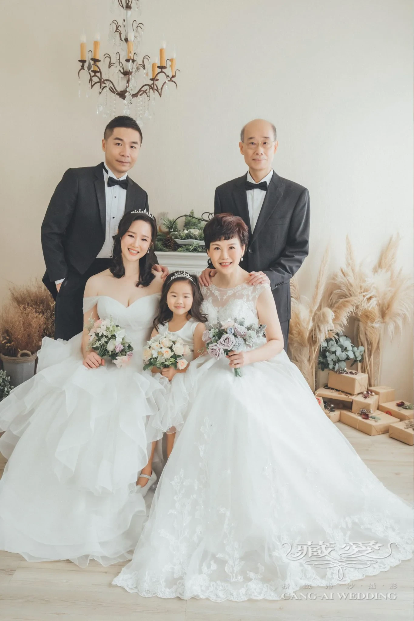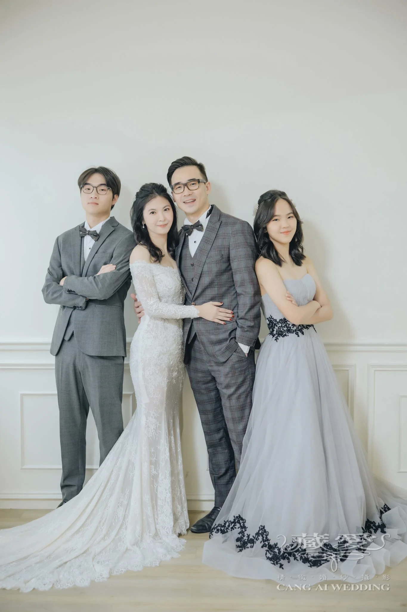 紀念一下難得的全家福🩵 - 媽媽結婚那天發高燒,所有拍出來的照片都病懨懨的,一直以來都很想好好的全家人拍一次全家福,終於在各方協調下完成此次任務。 從全家服的繪圖討論、衣物製作、禮服挑選、拍攝日排程和照片挑選,前前後後總共也花費了半年以上的時間,最終看到成品,終究是值得的ദ്ദി ˃ ᵕ ˂ ) 過程中謝謝門市欣岢,提供物超所值的優惠給我們,讓我們在有限的預算完成不可能的任務,也謝謝禮服秘書莉莉安,在挑選禮服的過程中給予建議,讓每個人都能在茫茫禮服海中挑選出自己最滿意的那套禮服。 拍攝當天很謝謝攝影師阿傑老師和他的助理,幫我們喬姿勢、喬位置、調整裙擺、控制寵物的鏡頭,那天拍攝完全0️⃣壓力且非常歡愉,連爸爸媽媽的鏡...