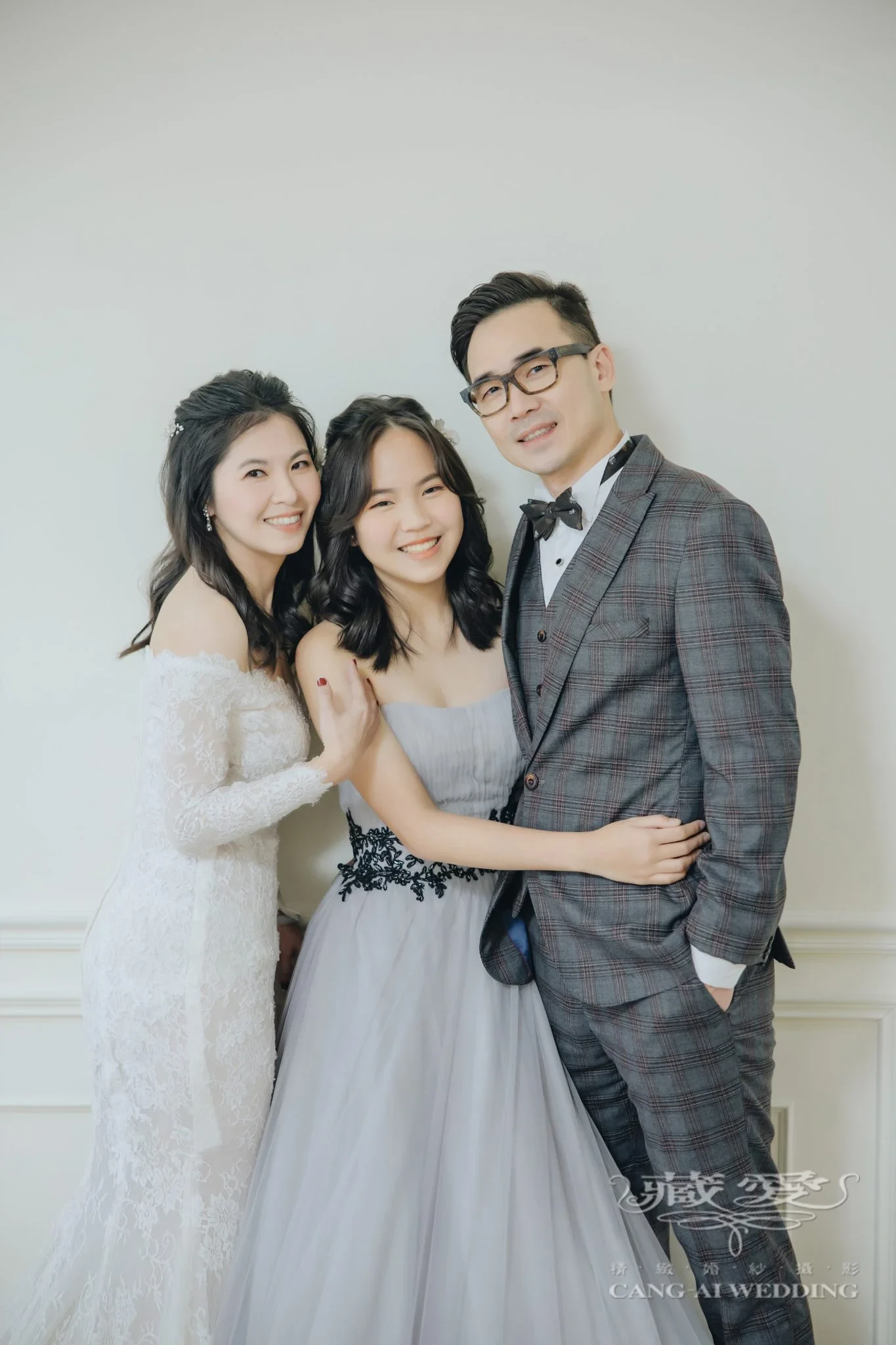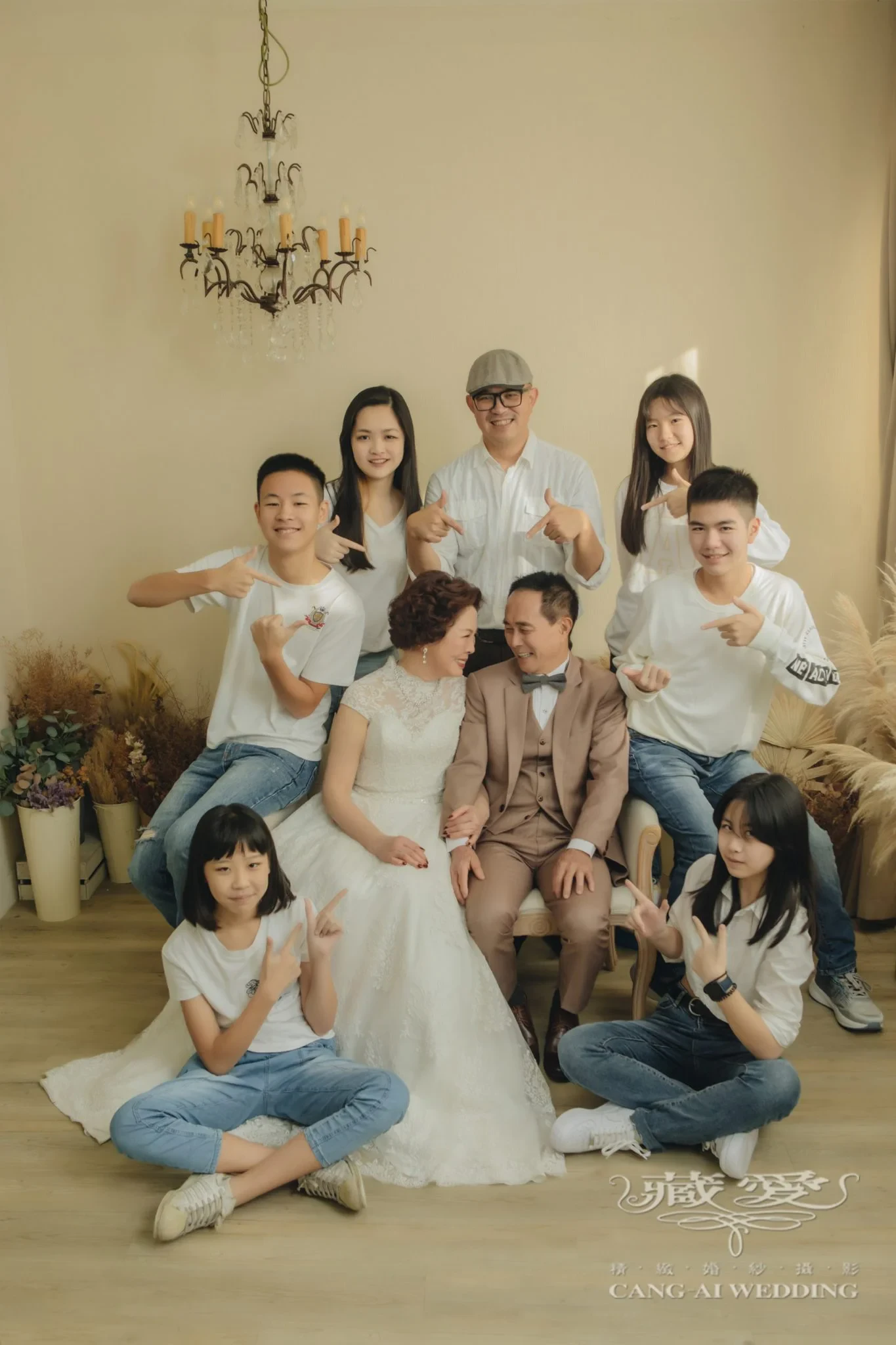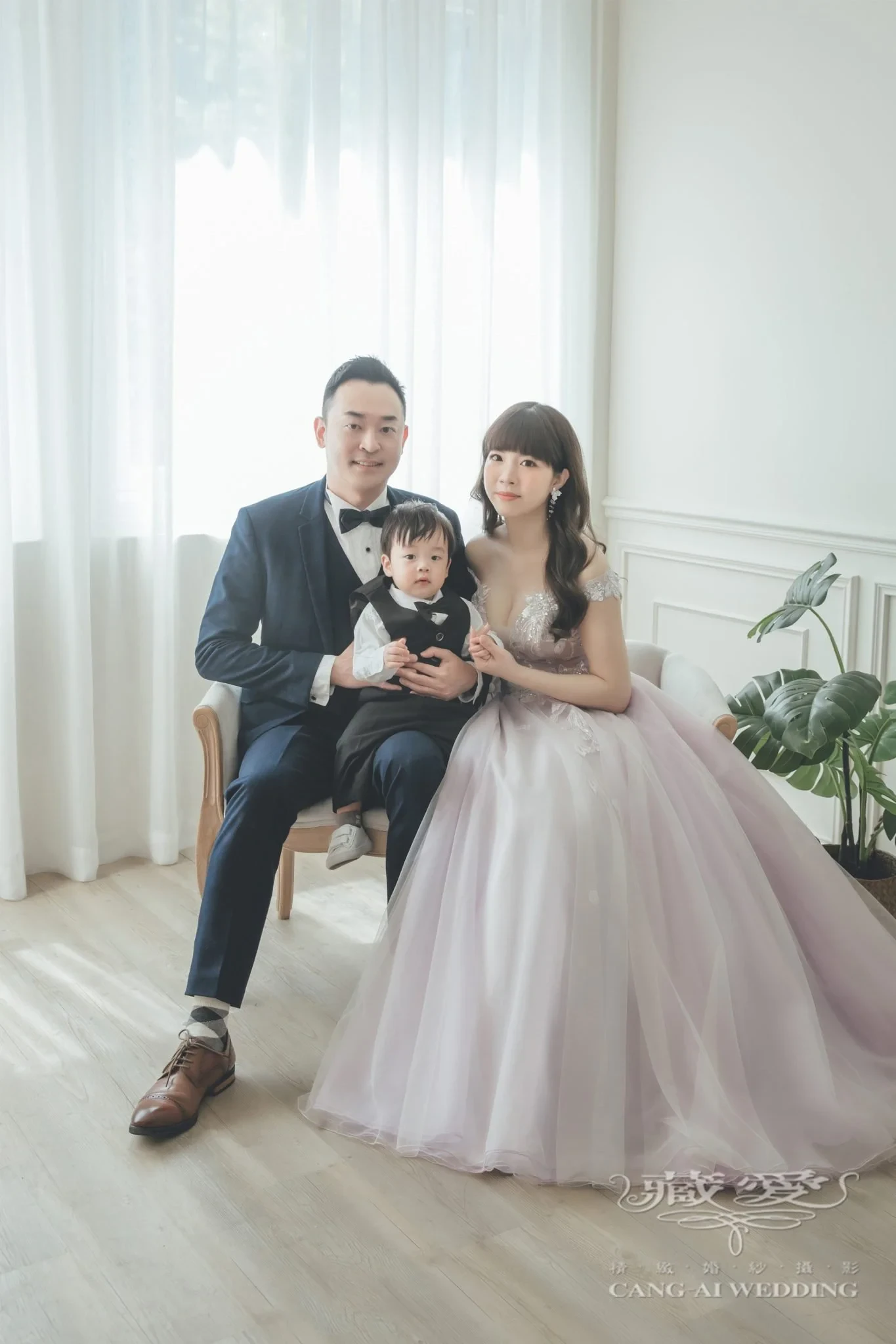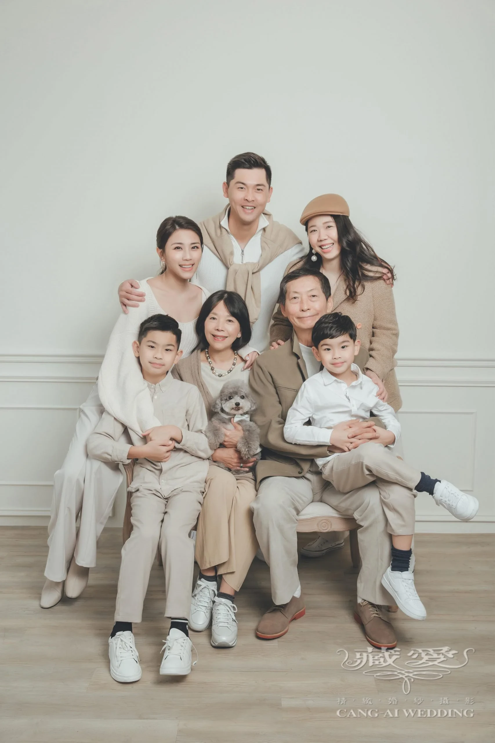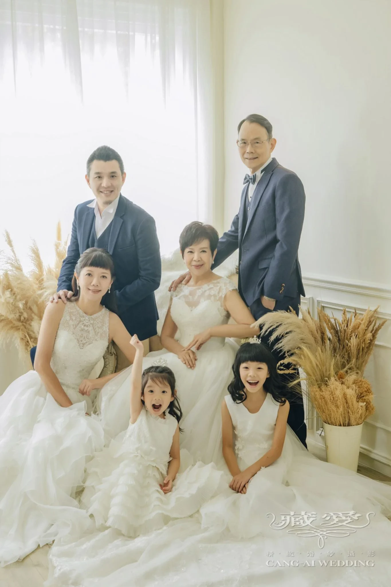 這次主要體驗家庭照,因為家裏五個人從來沒有一起正式合影過,想著找一家正式攝影拍,在網路上無意間看到藏愛的廣告,於事點進去看(事後家人告訴我是個老字號店)。對我來說是一個很新穎的體驗,因為第一次這麼正式的拍照,要先選禮服,之後還要上妝及頭髮髮型,整個過程雖然有點勞累,但工作人員人都很客氣,而且也都盡可能配合我們家庭時間。最令人期待的就是最後的照片,我們一家五人,選擇一套禮服一套便服,風格則是自然休閒,因為我們家不常拍照,沒有辦法做出和諧的表情,要不是尬笑就是沒表情,然,在看到最後照片的時候,覺得攝影大哥很厲害,可以抓拍的很自然我們都很喜歡。整體體驗上是很好的,禮服有選到喜歡的,拍照後的成品也很讚,...