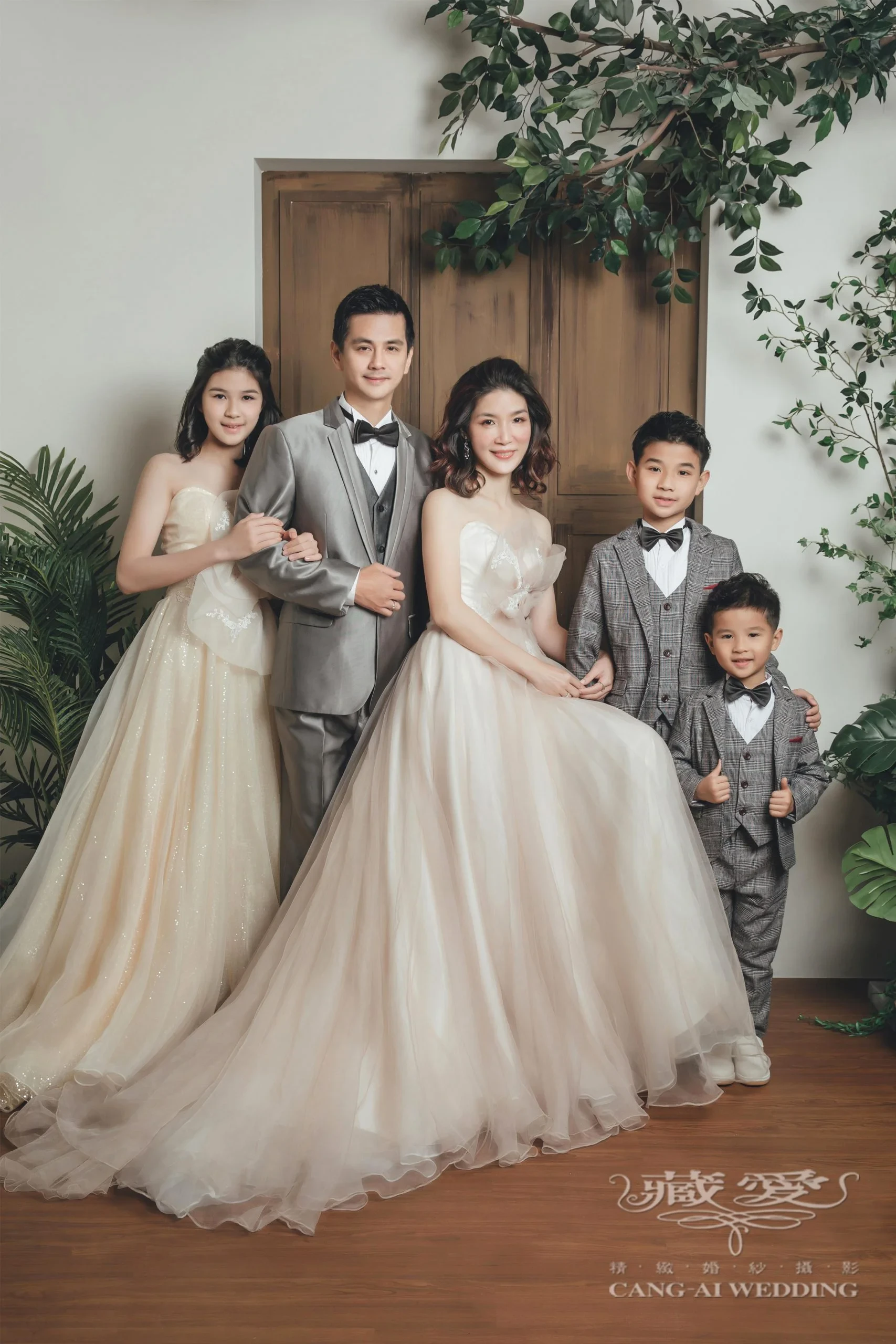 藏愛提供媽媽優雅禮服、爸爸紳士西裝、孩子可愛正裝等多樣選擇。運用30年手工訂製經驗,確保每位家庭成員都能找到最適合、最有自信的服裝。