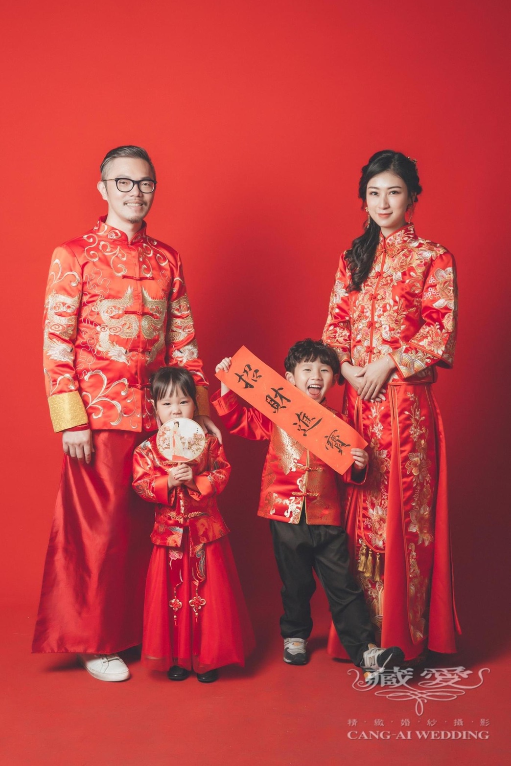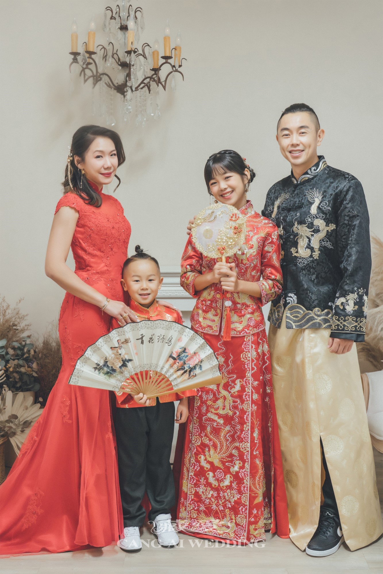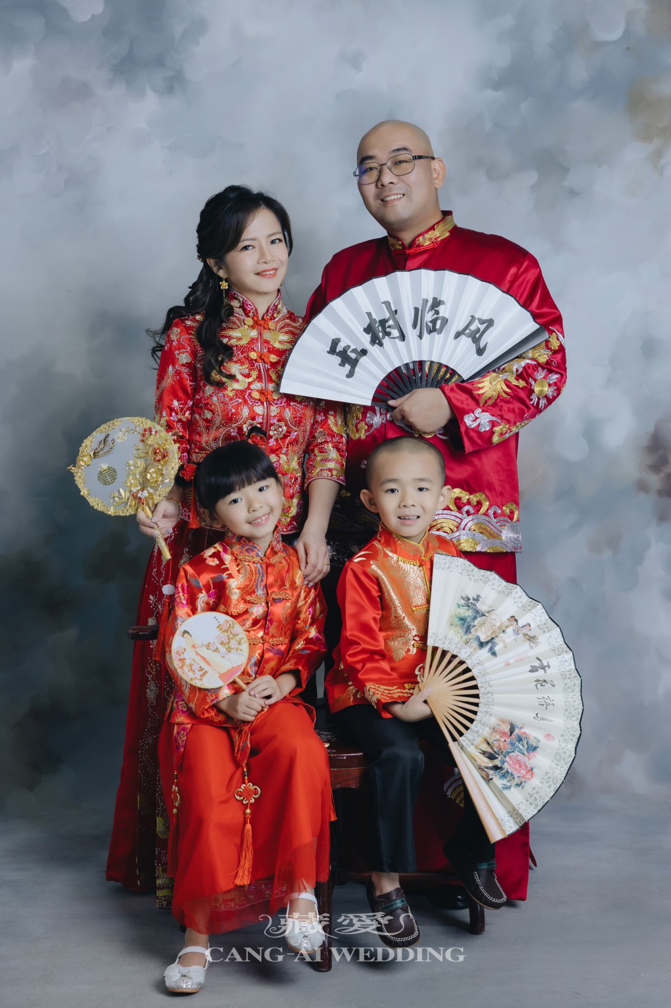 新年穿上中式服裝更是充滿儀式感與節慶氛圍。秀禾服的典雅喜氣,搭配春聯、摺扇等節慶氛圍配件,拍出既喜氣又具故事感的畫面。這樣的全家福,不僅象徵新年的好兆頭,更象徵著幸福的延續與家族的凝聚。