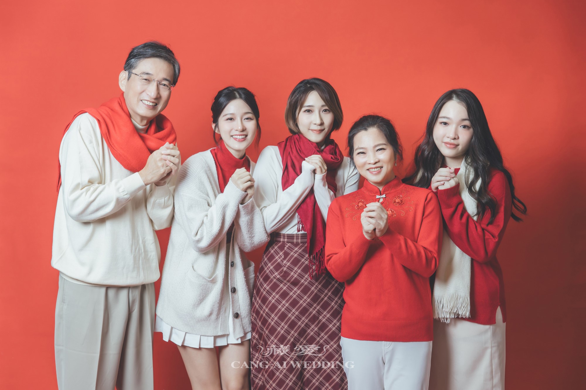 隨著聖誕鈴聲漸漸遠去,濃濃的年味也悄然登場。聖誕節過後緊接著迎來新年,紅燈籠、春聯與紅色布景點綴其中,讓攝影棚也換上喜氣洋洋的新裝。家人們一同穿上紅衣裳,手拿春聯拜年,小朋友開心地拿著紅包袋,笑聲此起彼落,洋溢著團圓的喜悅。